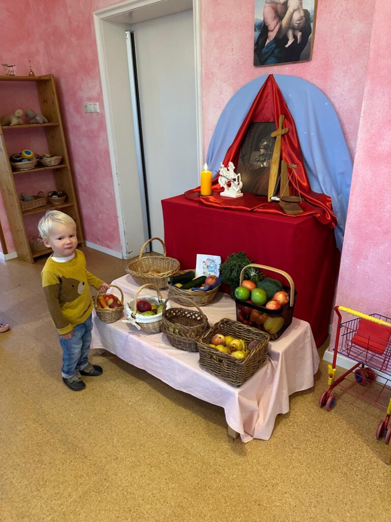 Ein weiterer Inhalt unserer Pädagogik ist die Verknüpfung von Bewegung und Sprache und wird für die Kinder in den jahreszeitlichen Liedern, Geschichten, Rhythmen und Reimen, Finger- und Puppenspielen erlebbar gemacht.