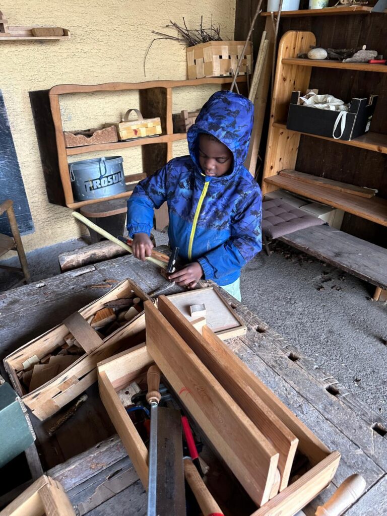 Raum für Kreativität und handwerkliches Tun mit einfachen, naturbelassenen Materialien.